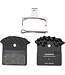 The Shimano J05A-RF pads use a resin (organic) compound paired with an aluminum Ice-Tech finned backing plate, designed to improve cooling and extend pad life by roughly 50% over previous resin versions. These pads provide smooth, quiet braking and excellent modulation.